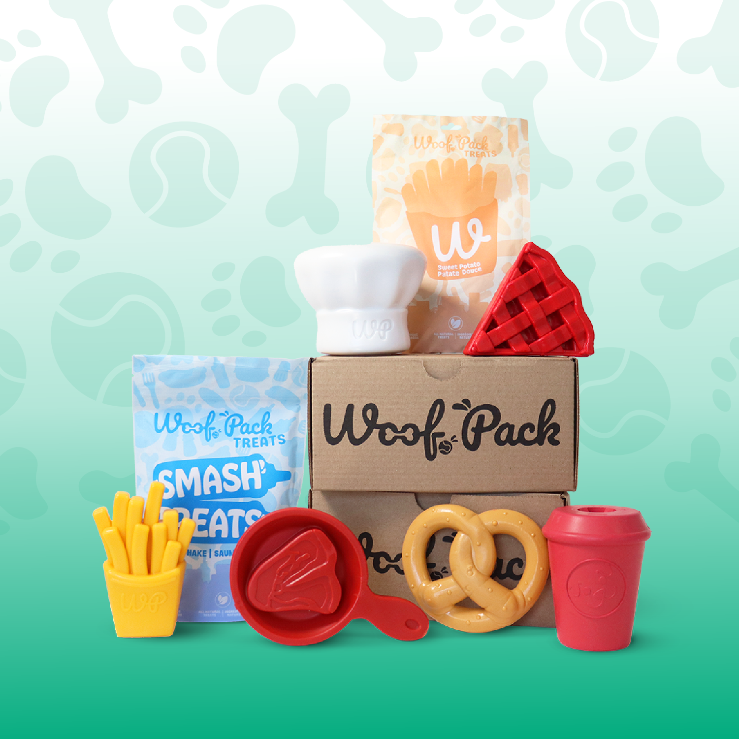 Yes! Each Woof Pack can be customized based on your dog’s size and chewing style. Whether your pup is small, medium, large, or a heavy chewer, we make sure their box includes the right mix of safe, durable toys and all-natural American/Canadian-made treats. Every Woof Pack is tailored to keep playtime fun and worry-free