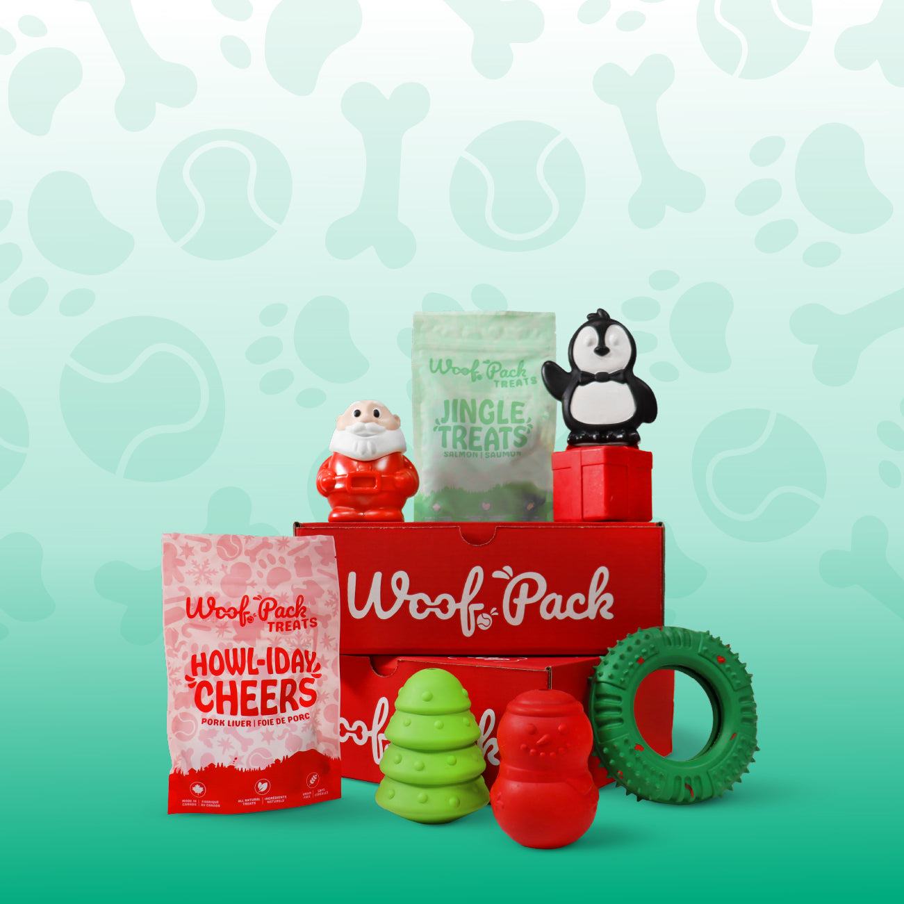 Each Woof Pack includes 4–5 premium items: 2 unique engaging, dog-tested toys and 2 bags of all-natural treats, valued at over $55. Every box is carefully curated with fun themes to keep your pup happy, healthy, and entertained each month.