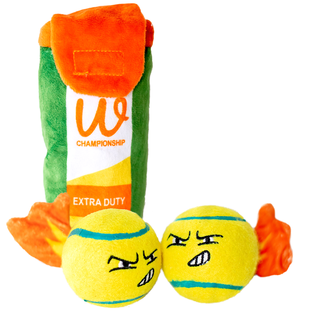 Treat your doggo to the perfect Tennis game with the Woofson Ball Case ! Just stuff the 2 ace balls into the case and sit back and watch as your dog excitedly digs in. Once your tennis lover pup has all the squeaky balls out, they’ll be begging you to put them back in again and again for hours of fun!