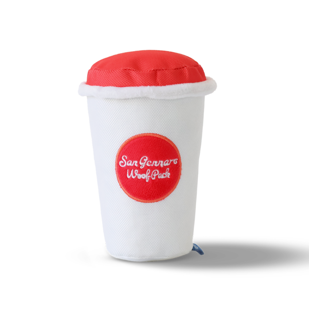 A squeaky coffee cup made just for pups-hold the caffeine, keep the fun!