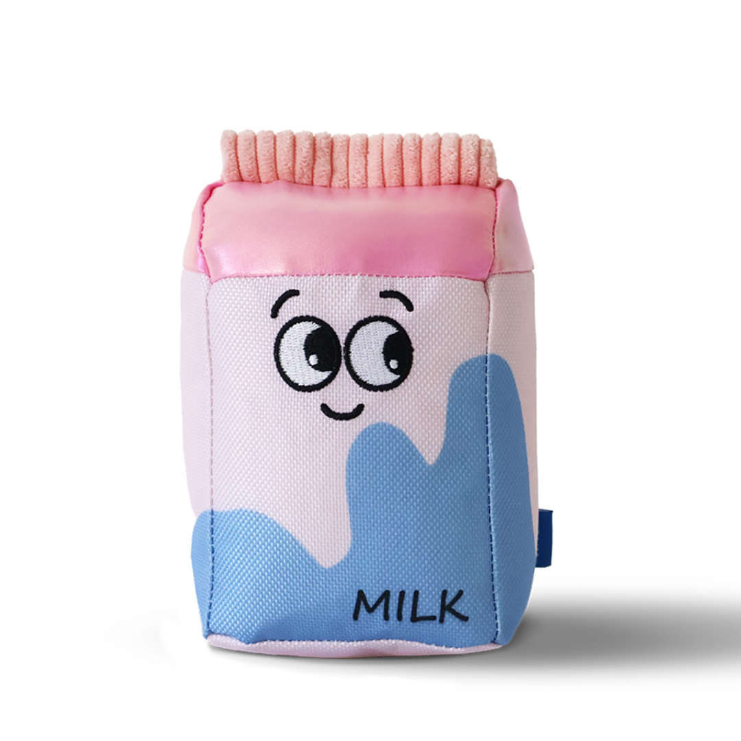Milk carton: A squeaky splash of fun - the perfect "pup milk" to pair with their espresso playtime!